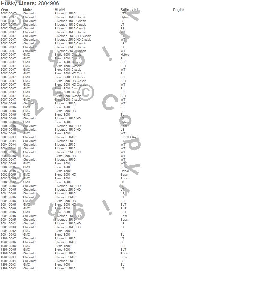 Below is an abbreviated list of applications for the Fender Flares.Sierra 1500, Sierra 1500 Classic, Sierra 2500 HD, Sierra 2500 HD Classic, Sierra 3500, Sierra 3500 Classic, Silverado 1500, Silverado 1500 Classic, Silverado 1500 HD, Silverado 2500, Silverado 2500 HD, Silverado 2500 HD Classic, Silverado 3500, Silverado 3500 Classic, Chevrolet, GMC, 2007, 2006, 2005, 2004