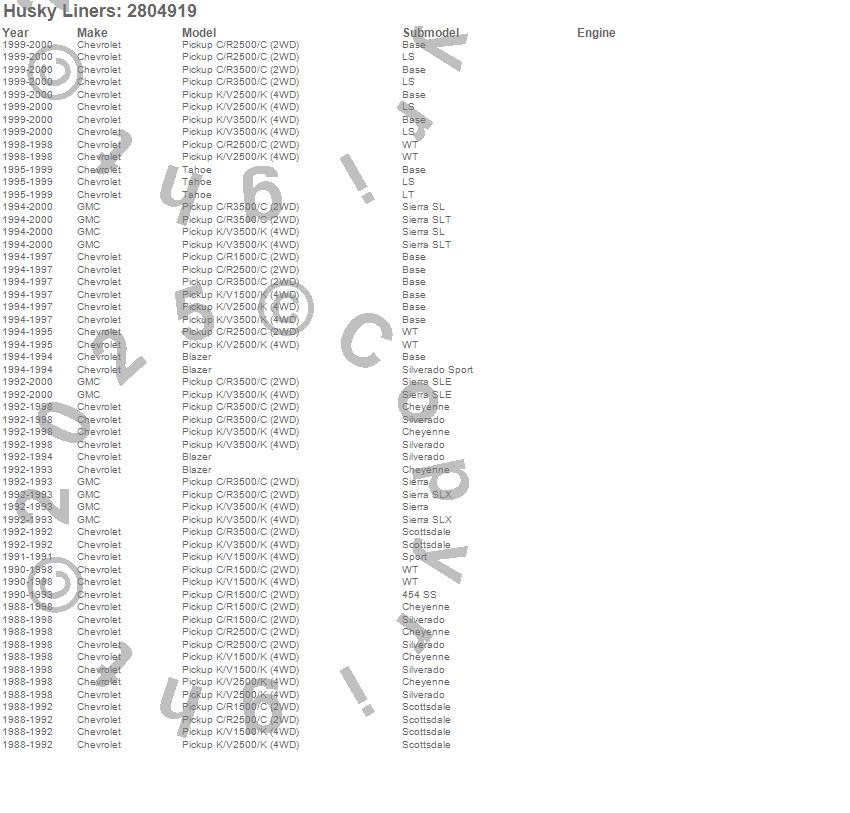 Below is an abbreviated list of applications for the Fender Flares.Blazer, C1500 Pickup, C2500 Pickup, C3500 Pickup, K1500 Pickup, K2500 Pickup, K3500 Pickup, Tahoe, Chevrolet, GMC, 2000, 1999, 1998, 1997, 1996, 1995, 1994, 1993, 1992, 1991