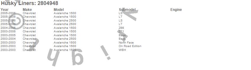 Below is an abbreviated list of applications for the Fender Flares.Avalanche 1500, Avalanche 2500, Chevrolet, 2006, 2005, 2004, 2003