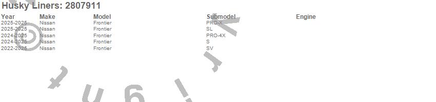 Brand: Husky LinersPart Number: 2807911Fender Flare Type: Black - 4 pc. - ABS Thermoplastic - No Drilling Required - Pocket StyleUPC: 753933003869