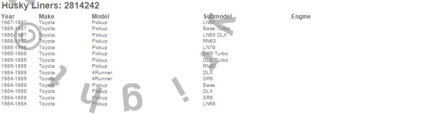 Below is an abbreviated list of applications for the Hood Shield.4Runner, Pickup, Toyota, 1989, 1988, 1987, 1986, 1985, 1984