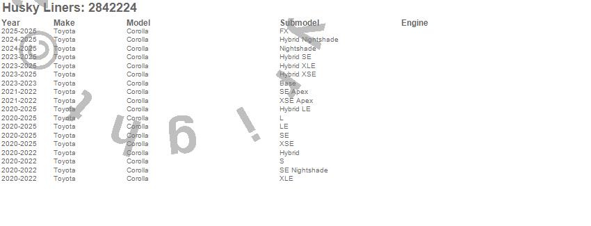 Below is an abbreviated list of applications for the AEROSKIN Hood Protector.Corolla, Toyota, 2026, 2025, 2024, 2023, 2022, 2021, 2020