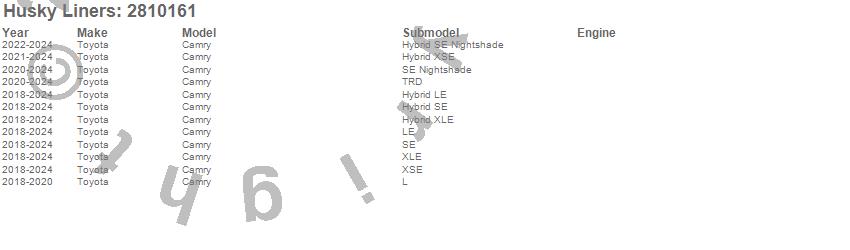 Below is an abbreviated list of applications for the Hood Shield.Camry, Toyota, 2024, 2023, 2022, 2021, 2020, 2019, 2018