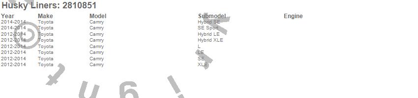 Below is an abbreviated list of applications for the Hood Shield.Camry, Toyota, 2014, 2013, 2012