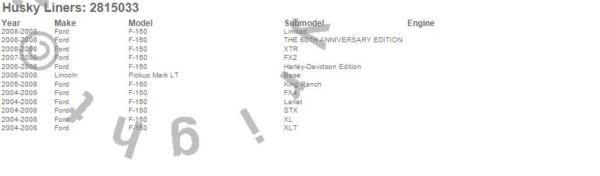 Below is an abbreviated list of applications for the Hood Shield.F-150, Mark LT, Ford, Lincoln, 2008, 2007, 2006, 2005, 2004