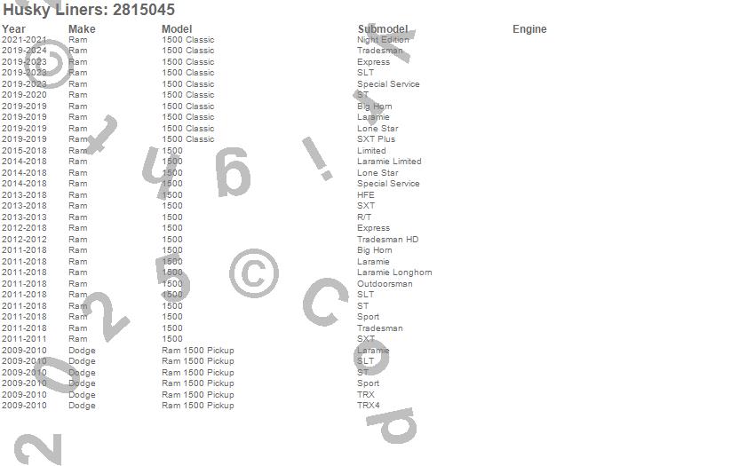 Below is an abbreviated list of applications for the Hood Shield.1500, 1500 Classic, Ram 1500, Dodge, Ram, 2024, 2023, 2022, 2021, 2020, 2019, 2018, 2017, 2016, 2015, 2014, 2013, 2012, 2011, 2010