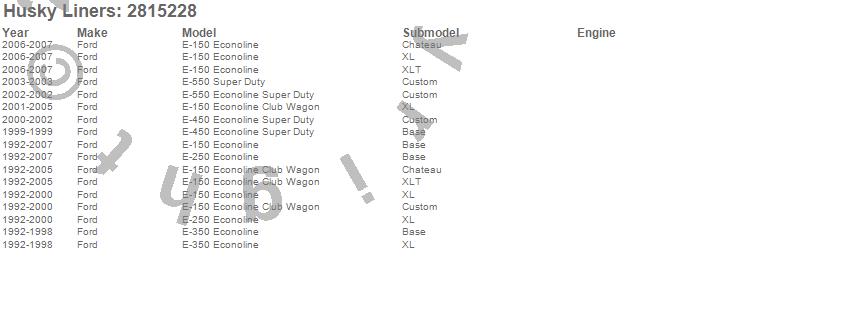 Below is an abbreviated list of applications for the Hood Shield.E-150 Econoline, E-150 Econoline Club Wagon, E-250 Econoline, E-350 Econoline, E-450 Econoline Super Duty, E-550 Econoline Super Duty, E-550 Super Duty, Ford, 2007, 2006, 2005, 2004, 2003, 2002, 2001, 2000, 1999, 1998, 1997, 1996