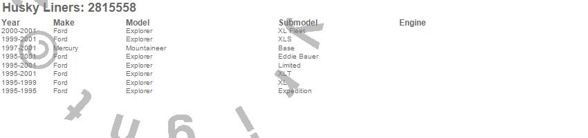 Below is an abbreviated list of applications for the Hood Shield.Explorer, Mountaineer, Ford, Mercury, 2001, 2000, 1999, 1998, 1997, 1996, 1995