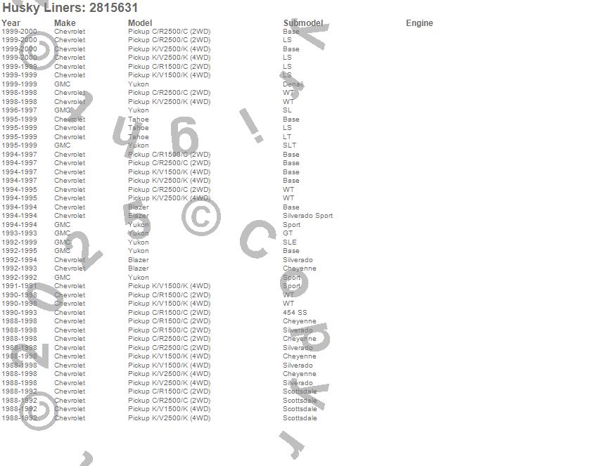 Below is an abbreviated list of applications for the Hood Shield.Blazer, C1500 Pickup, C2500 Pickup, K1500 Pickup, K2500 Pickup, Tahoe, Yukon, Chevrolet, GMC, 2000, 1999, 1998, 1997, 1996, 1995, 1994, 1993, 1992, 1991, 1990