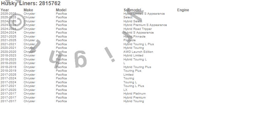Below is an abbreviated list of applications for the Hood Shield.Pacifica, Chrysler, 2026, 2025, 2024, 2023, 2022, 2021, 2020, 2019, 2018, 2017