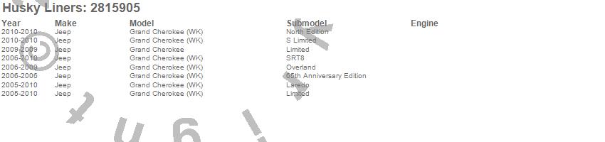 Below is an abbreviated list of applications for the Hood Shield.Grand Cherokee, Grand Cherokee (WK), Jeep, 2010, 2009, 2008, 2007, 2006, 2005