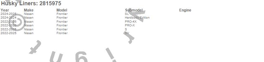 Brand: Husky LinersPart Number: 2815975Hood Protector Type: Modified Acrylic - SmokeUPC: 753933006006