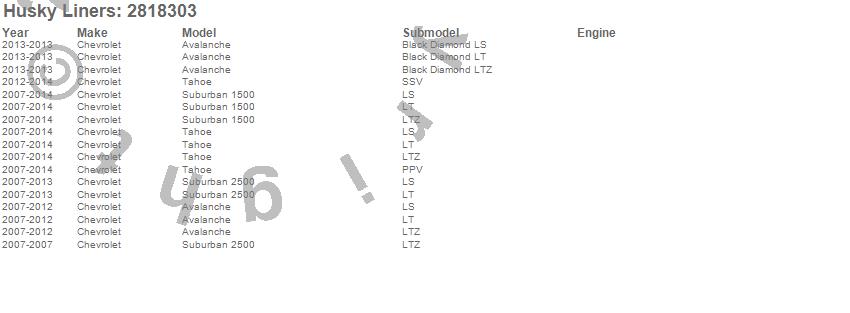 Below is an abbreviated list of applications for the Hood Shield.Avalanche, Suburban 1500, Suburban 2500, Tahoe, Chevrolet, 2014, 2013, 2012, 2011, 2010, 2009, 2008, 2007