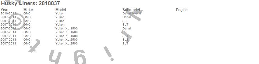 Below is an abbreviated list of applications for the Hood Shield.Yukon, Yukon XL 1500, Yukon XL 2500, GMC, 2014, 2013, 2012, 2011, 2010, 2009, 2008, 2007