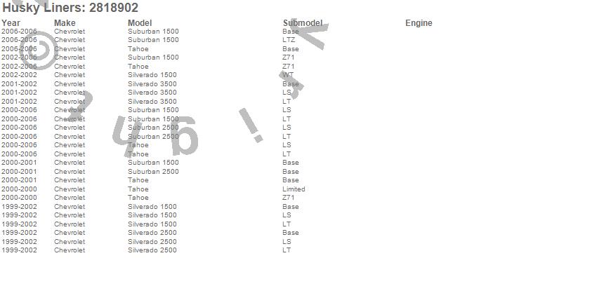 Below is an abbreviated list of applications for the Hood Shield.Silverado 1500, Silverado 2500, Silverado 3500, Suburban 1500, Suburban 2500, Tahoe, Chevrolet, 2006, 2005, 2004, 2003, 2002, 2001, 2000, 1999