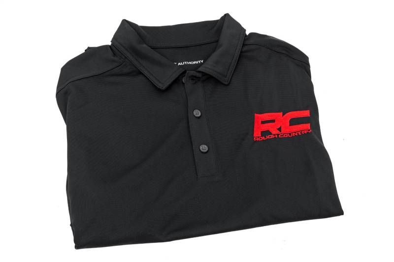 Buy this Polo Shirt Rough Country 83912 Front RC Logo - Back Blank - Moisture Wicking - Black - X-Large here at SVCustoms.com an authorized Rough Country Shirt dealer and distributor.