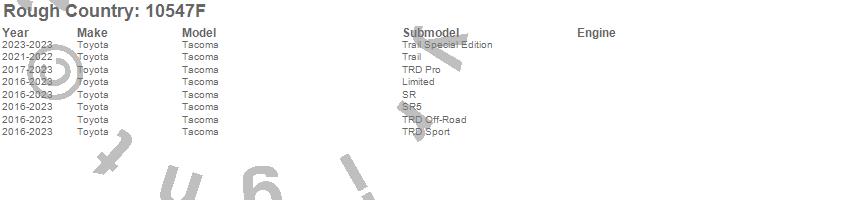 Below is an abbreviated list of applications for the Cold Air Intake.Tacoma, Toyota, 2023, 2022, 2021, 2020, 2019, 2018, 2017, 2016