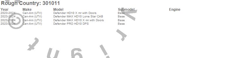 Brand: Rough CountryPart Number: 301011Coil Over Shock Absorber Type: Front - 0-2 in. Lift - 21.10 in. Extended Length - 13.11 in. Collapsed LengthUPC: 840269953101