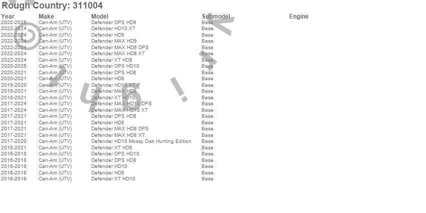 Below is an abbreviated list of applications for the N3 Coil Over Shock Absorber.Defender DPS HD10, Defender DPS HD5, Defender DPS HD8, Defender DPS HD9, Defender HD10, Defender HD10 Mossy Oak Hunting Edition, Defender HD10 XT, Defender HD10 XT-P, Defender HD5, Defender HD8, Defender HD9, Defender MAX HD10 DPS, Defender MAX HD10 XT, Defender MAX HD8, Defender MAX HD8 DPS, Defender MAX HD8 XT, Defender MAX HD9, Defender MAX HD9 DPS, Defender MAX HD9 XT, Defender XT HD10