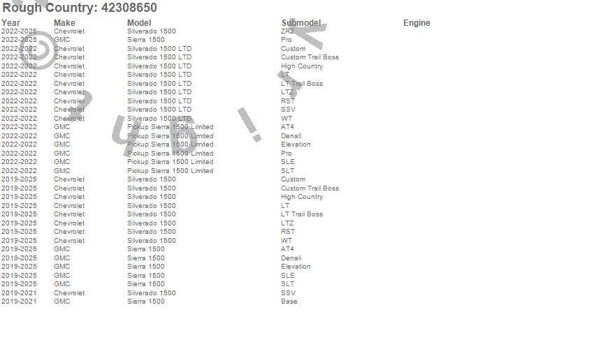 Brand: Rough CountryPart Number: 42308650Tonneau Cover Type: Textured - Leather-Grain Vinyl - Tailgate - Velcro Side RailsUPC: 840269942037