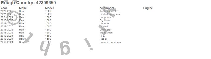 Brand: Rough CountryPart Number: 42309650Tonneau Cover Type: Textured - Leather-Grain Vinyl - Tailgate - Velcro Side RailsUPC: 840269942051
