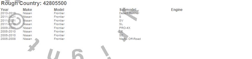 Brand: Rough CountryPart Number: 42805500Tonneau Cover Type: Textured - Leather-Grain Vinyl - Tailgate - Velcro Side RailsUPC: 840269942099