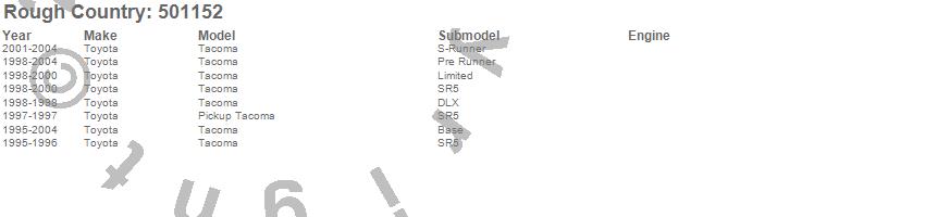 Below is an abbreviated list of applications for the Lifted N3 Struts.Tacoma, Toyota, 2004, 2003, 2002, 2001, 2000, 1999, 1998, 1997, 1996, 1995