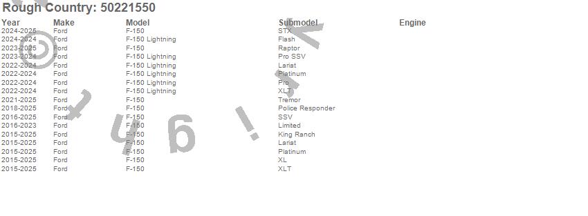 Brand: Rough CountryPart Number: 50221550Tonneau Cover Type: Textured Black Powder Coat - Lightweight Aluminum - TailgateUPC: 840269955815
