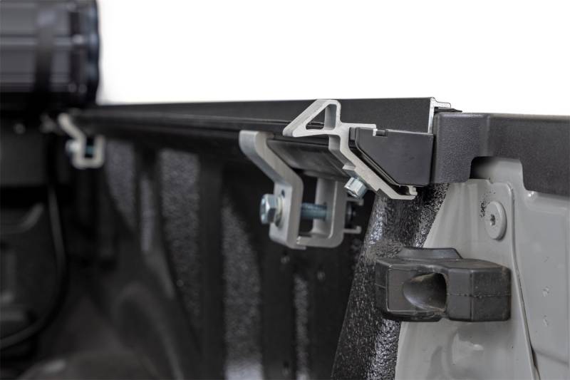 Buy this Hard Roll Up Bed Cover Rough Country 50221550 Textured Black Powder Coat - Lightweight Aluminum - Tailgate here at SVCustoms.com an authorized Rough Country Tonneau Cover dealer and distributor.
