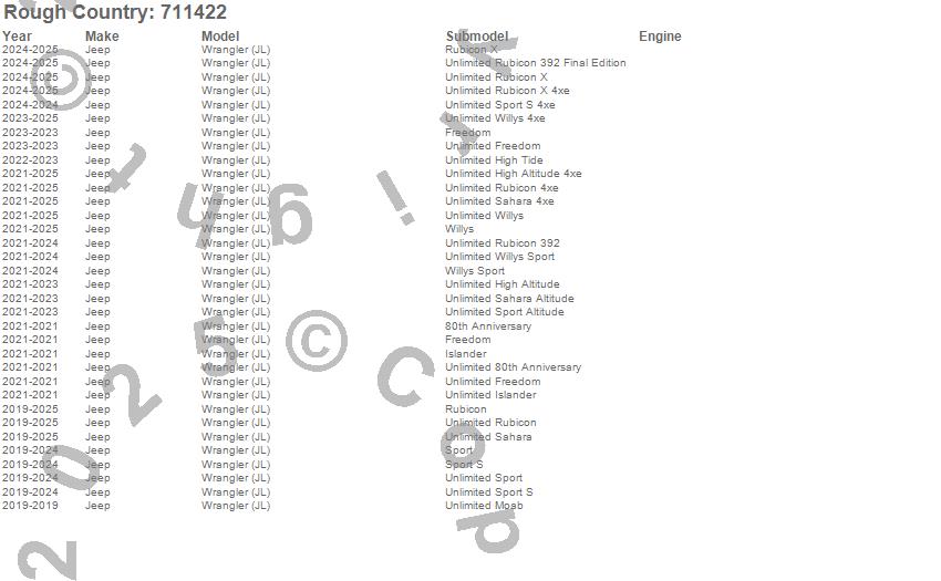 Below is an abbreviated list of applications for the Brake Caliper Covers.Wrangler (JL), Jeep, 2025, 2024, 2023, 2022, 2021, 2020, 2019