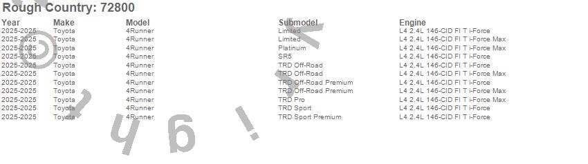 Below is an abbreviated list of applications for the Leveling Kit.4Runner, Toyota, 2025