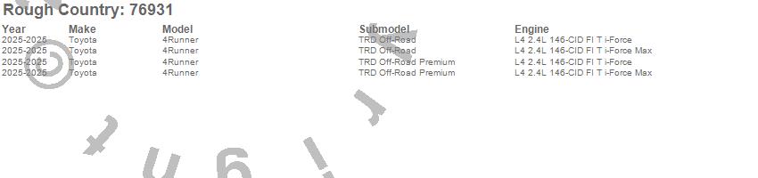 Below is an abbreviated list of applications for the Suspension Lift Kit.4Runner, Toyota, 2025