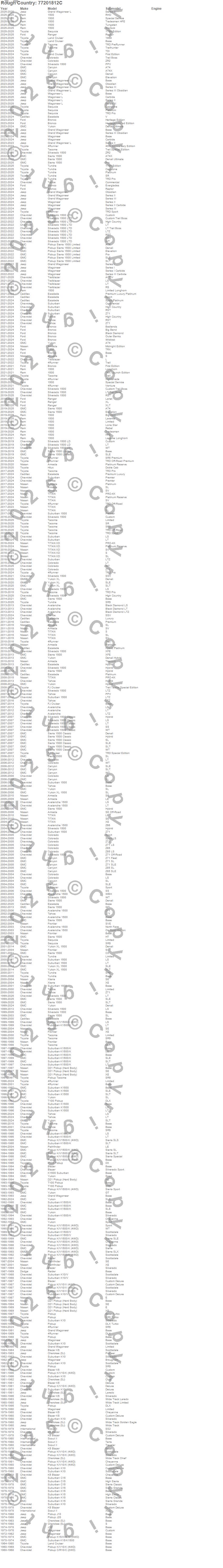 Below is an abbreviated list of applications for the Series 77 Wheel.1500, 4Runner, Armada, Avalanche, Avalanche 1500, Blazer, Blazer K5, Bronco, C10 Pickup, C15 Suburban, Canyon, Cherokee (SJ), Colorado, D21 Pickup (Hard Body), Escalade, FJ Cruiser, Frontier, Grand Wagoneer, Grand Wagoneer L, Hilux
