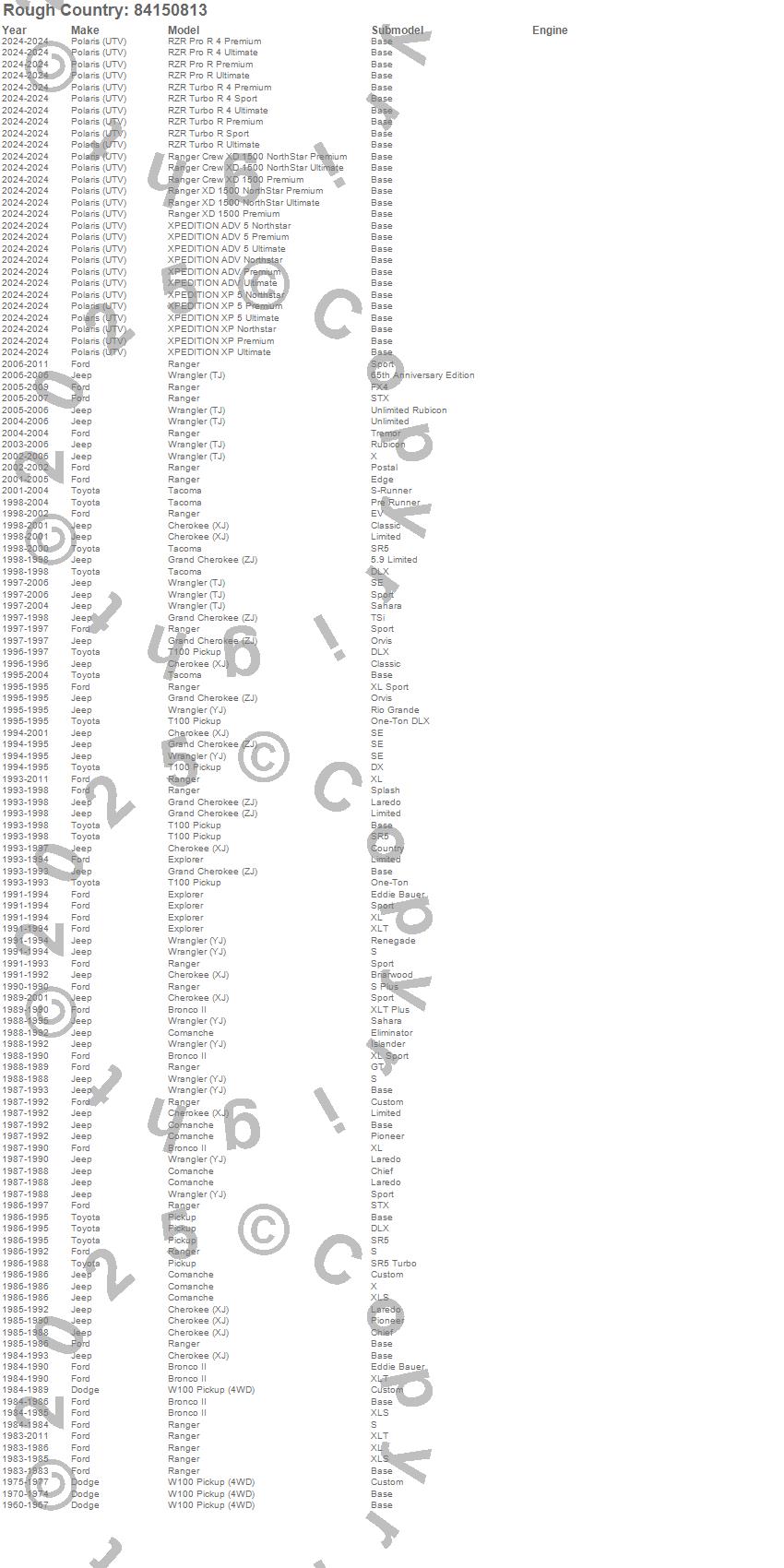 Below is an abbreviated list of applications for the Series 84 Wheel.Bronco II, Cherokee (XJ), Comanche, Explorer, Grand Cherokee (ZJ), Pickup, Ranger, Ranger Crew XD 1500 NorthStar Premium, Ranger Crew XD 1500 NorthStar Ultimate, Ranger Crew XD 1500 Premium, Ranger XD 1500 NorthStar Premium, Ranger XD 1500 NorthStar Ultimate, Ranger XD 1500 Premium, RZR Pro R 4 Premium, RZR Pro R 4 Ultimate, RZR Pro R Premium, RZR Pro R Ultimate, RZR Turbo R 4 Premium, RZR Turbo R 4 Sport, RZR Turbo R 4 Ultimate