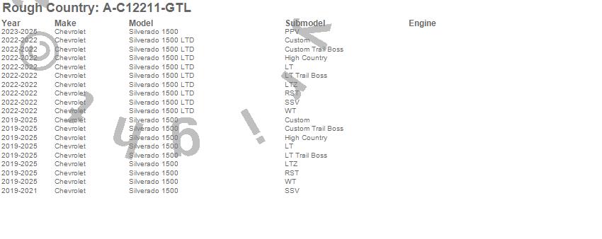 Below is an abbreviated list of applications for the Fender Flares.Silverado 1500, Silverado 1500 LTD, Chevrolet, 2025, 2024, 2023, 2022, 2021, 2020, 2019