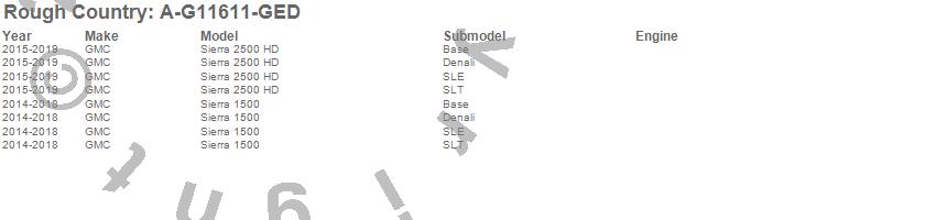 Below is an abbreviated list of applications for the Fender Flares.Sierra 1500, Sierra 2500 HD, GMC, 2019, 2018, 2017, 2016, 2015, 2014