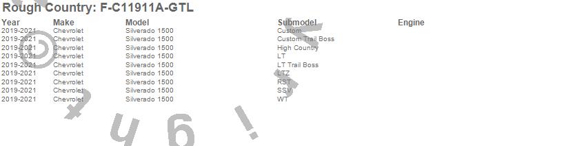 Brand: Rough CountryPart Number: F-C11911A-GTLFender Flare Type: Sport - GTL Desert SandUPC: 840269960703