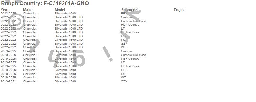 Below is an abbreviated list of applications for the Fender Flares.Silverado 1500, Silverado 1500 LTD, Chevrolet, 2025, 2024, 2023, 2022, 2021, 2020, 2019