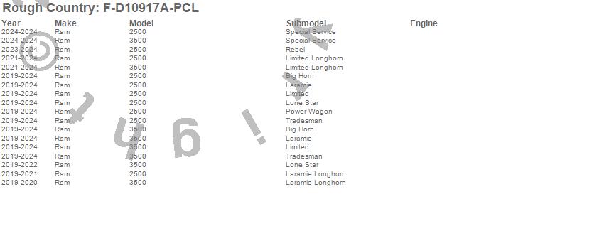 Brand: Rough CountryPart Number: F-D10917A-PCLFender Flare Type: 2 in. Tire Coverage - 5.25 in. Flare Height - PCL Blue StreakUPC: 840269961182