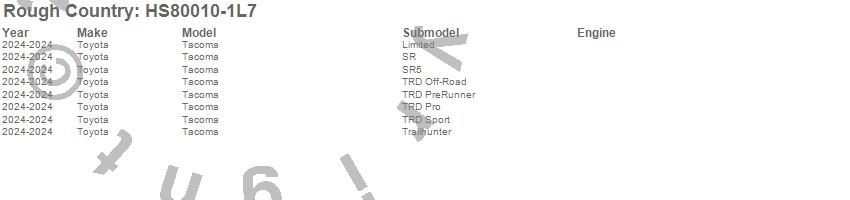 Brand: Rough CountryPart Number: HS80010-1L7Hood Scoop Type: UndergroundUPC: 840269968563