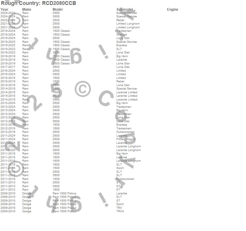 Brand: Rough CountryPart Number: RCD2080CCBNerf/Step Bar Type: 4 Step - 75.91 in. LengthUPC: 840269955440