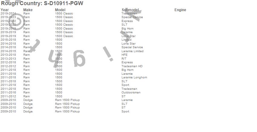 Below is an abbreviated list of applications for the Fender Flares.1500, 1500 Classic, Ram 1500, Dodge, Ram, 2024, 2023, 2022, 2021, 2020, 2019, 2018, 2017, 2016, 2015, 2014, 2013, 2012, 2011, 2010
