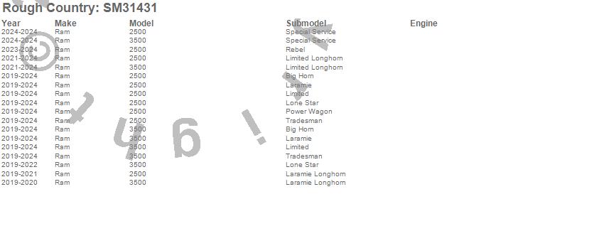 Brand: Rough CountryPart Number: SM31431Floor Mat Set Type: Front BucketUPC: 840269966828