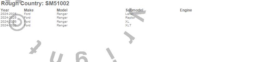 Brand: Rough CountryPart Number: SM51002Floor Mat Set Type: Front - Thermoplastic RubberUPC: 840269966804