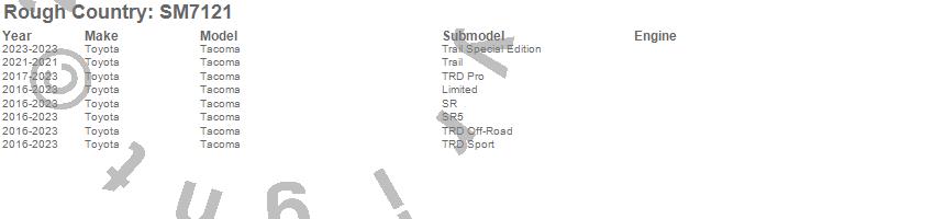 Below is an abbreviated list of applications for the Sure-Fit Floor Mats.Tacoma, Toyota, 2023, 2022, 2021, 2020, 2019, 2018, 2017, 2016
