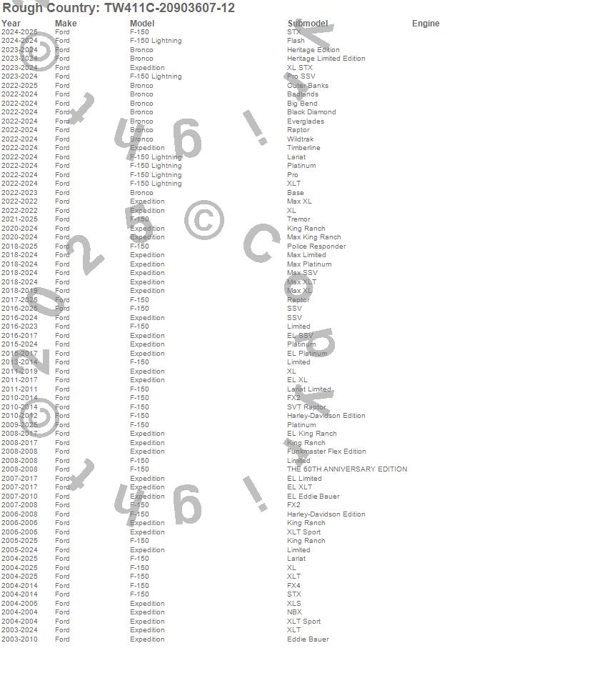 Below is an abbreviated list of applications for the Torque TW411 Pritchett Wheel.Bronco, Expedition, F-150, F-150 Lightning, Ford, 2025, 2024, 2023, 2022, 2021, 2020, 2019, 2018, 2017, 2016, 2015, 2014, 2013, 2012, 2011
