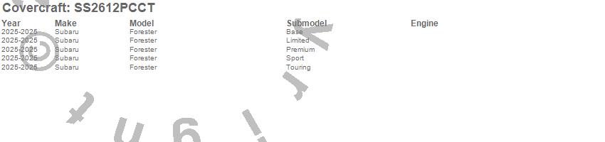 Below is an abbreviated list of applications for the SeatSaver Custom Seat Cover.Forester, Subaru, 2025