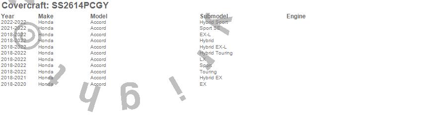 Below is an abbreviated list of applications for the SeatSaver Custom Seat Cover.Accord, Honda, 2022, 2021, 2020, 2019, 2018