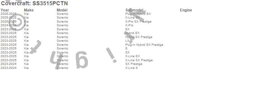 Below is an abbreviated list of applications for the SeatSaver Custom Seat Cover.Sorento, Kia, 2025, 2024, 2023