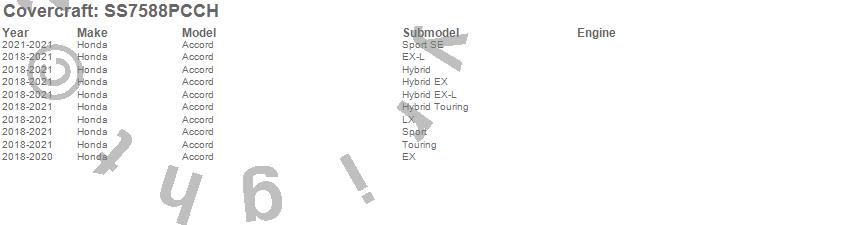 Below is an abbreviated list of applications for the SeatSaver Custom Seat Cover.Accord, Honda, 2021, 2020, 2019, 2018